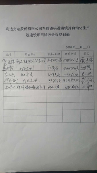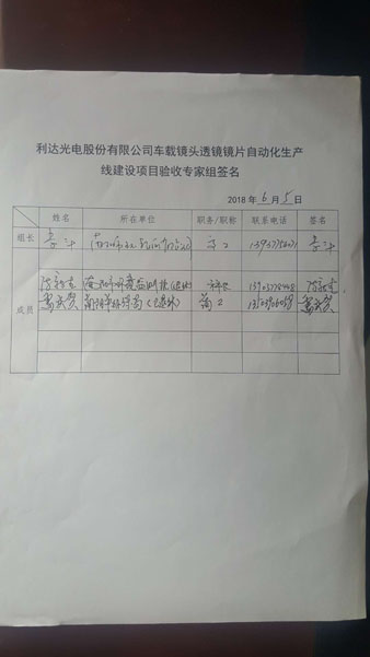 ??? 利達(dá)光電股份有限公司車載鏡頭透鏡鏡片自動化生產(chǎn)線建設(shè)項目竣工環(huán)境保護(hù)驗收意見 |
